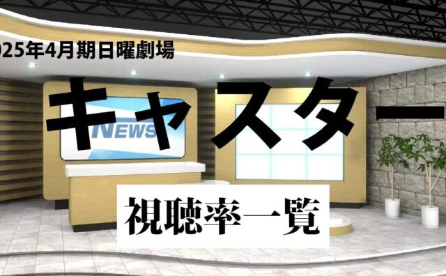 阿部寛主演の日曜劇場【キャスター】(TBS系)の視聴率一覧について紹介します。前作の日曜劇場「御上先生」より高いのでしょうか?それとも低いのでしょうか?視聴率が分かり次第、速報で更新します。(月曜が祝日の場合は発表が変更になる場合があります...