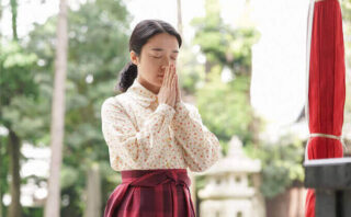 安子(上白石萌音)が拝殿の前で手を合わせている!?