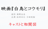 『白鳥とコウモリ』の登場人物を紹介します。<>は年齢です。ドラマ・映画化した場合は出演者名も追記します。