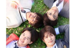 美 少年/ジャニーズ Jr.のメンバー、岩﨑大昇さん、那須雄登さん、藤井直樹さん、金指一世さんが笑顔いっぱいです。ドラマからそのまま抜け出してきた感じです。