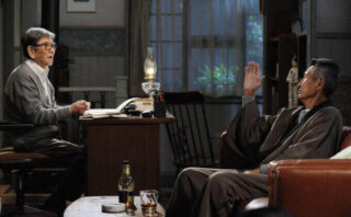 72話に引き続き、菊村(石坂浩二)は父・栄一(梅宮辰夫)に執筆中の『道』のあらすじを語ります。